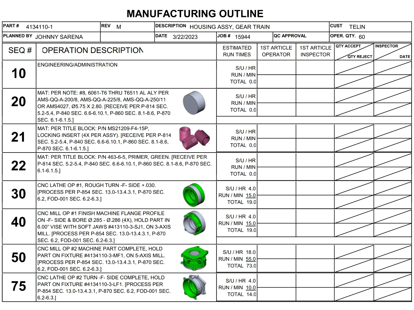 meticulous documentation with offset drawings, tool lists, and in-process